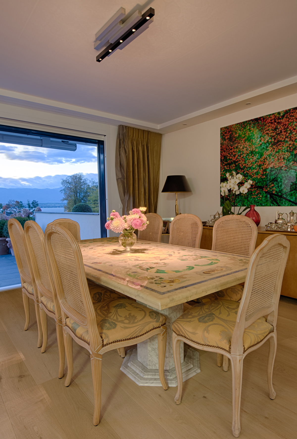 Inspirés par le manque sur le marché d'un éclairage pour tables, nous avons dessiné le luminaire "Sunrise". Assemblé sur mesure selon vos besoins pour des tables rectangulaires ou rondes, il permet un éclairage diffus de toute la surface sans éblouissement ni agressivité, voir photo. Sans oublier sa température de couleur de 2200K qui nous offre un effet d'éclairage proche de la bougie. Pour plus de détails n'hésitez pas de nous contacter: Agabekov SA.