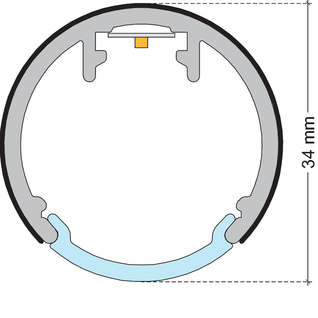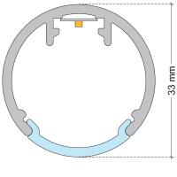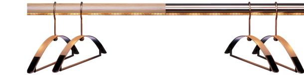 Extruded natural anodised aluminium tubular profile for illuminated closet rods with different lighting sources.