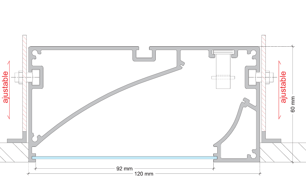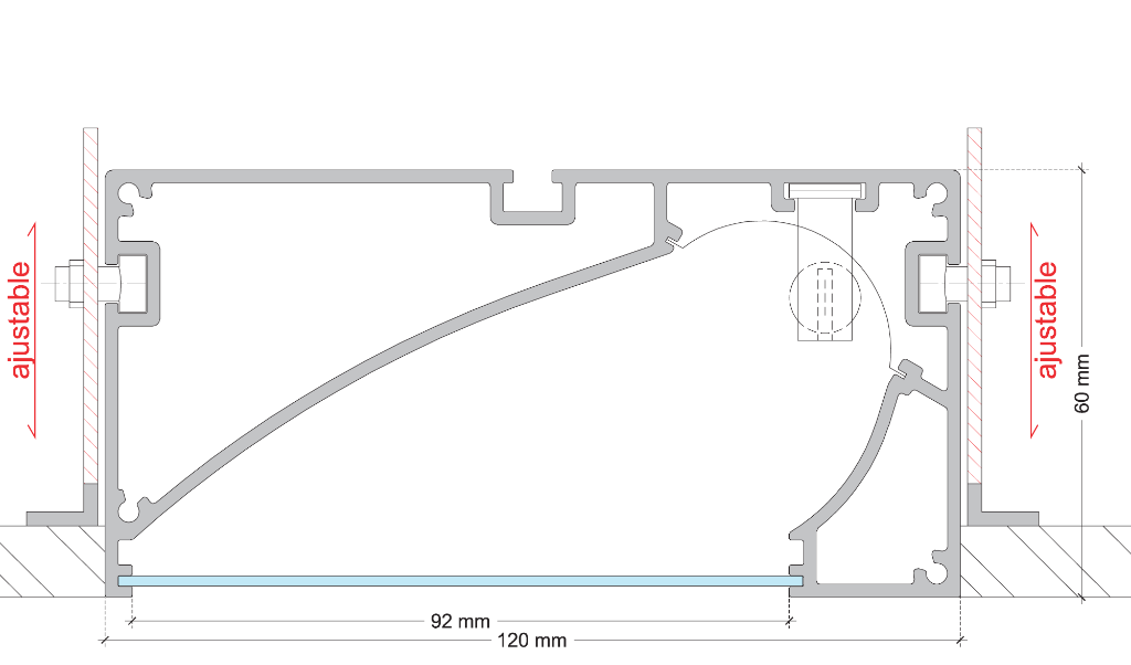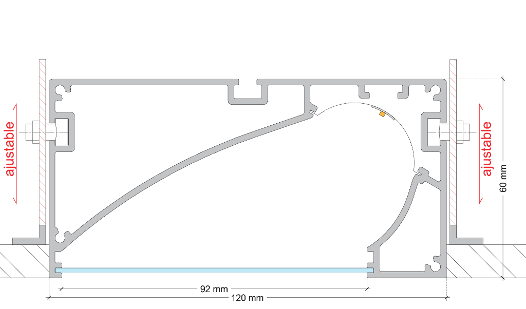 Natural anodised aluminuim wall-washer profile with 24° asymmetric reflector rendering an evenly diffused light.