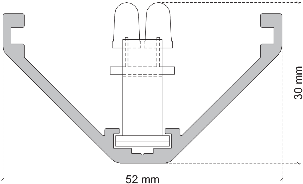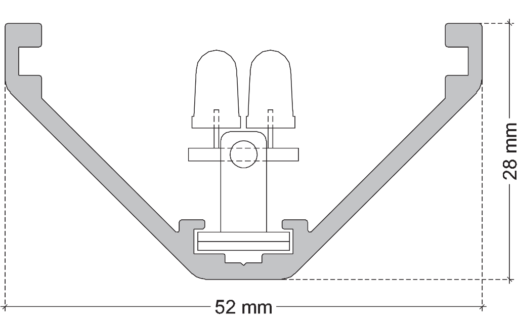 Natural anodised aluminuim profile with perfect light distribution and a large choice of lighting source.