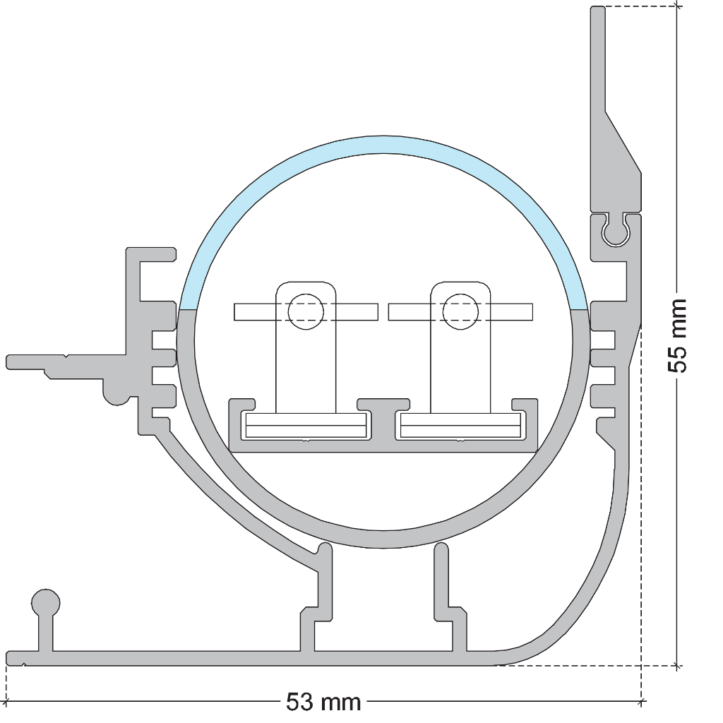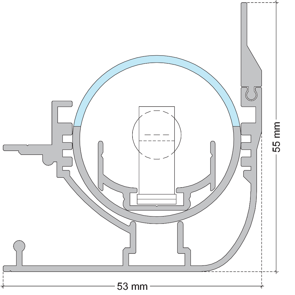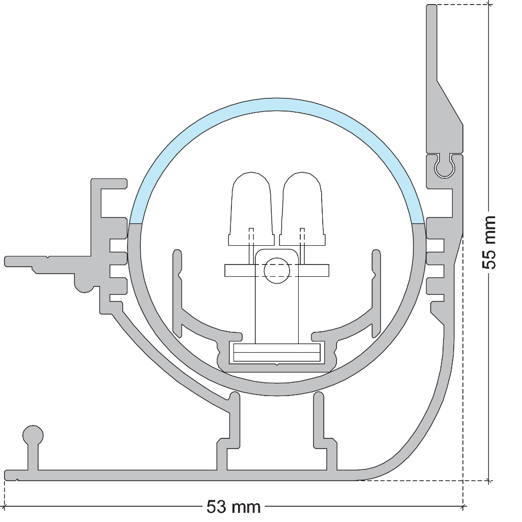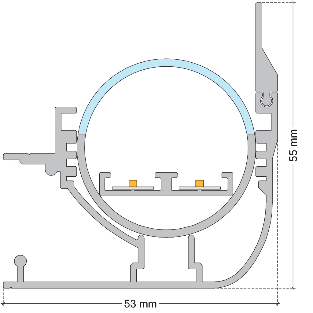 Natural anodised aluminuim profil with IP68 tube in polycarbonate lens with high mechanical and thermal resistance.