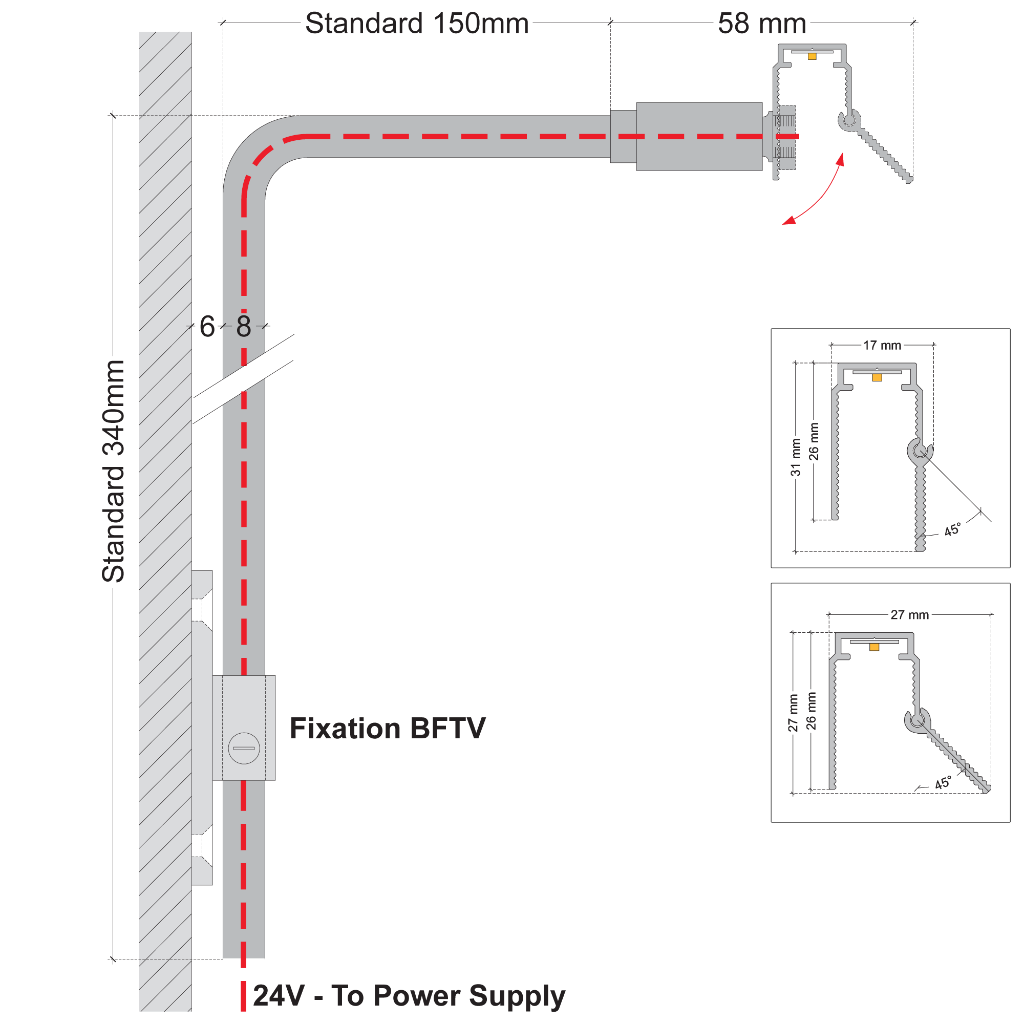 Natural anodised aluminuim profile designed to light picture with orientable visor.
