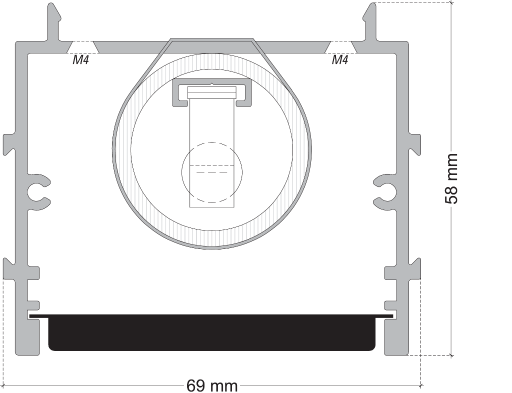 Linear luminaire with IP67 tube, slghtly opaline, resisting a high temperature 200°C .